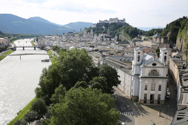 1 / 4Private City tour and coffee break at restaurant M32 with breathtaking view over Salzburg