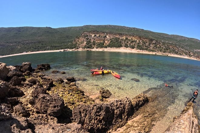 1 / 4Embark on a full day adventure to explore Arrábida Natural Park. We sail along a Pre-Historic coastline and Explore amazing sea caves, Cliff-jump into The Atlantic Ocean and Snorkel in a Marine Reserv