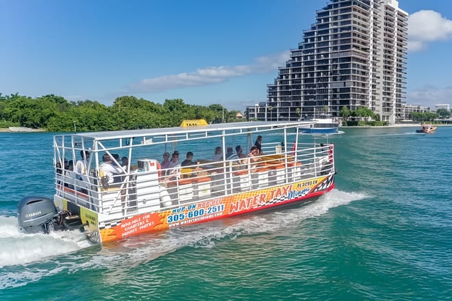 Highlights Take in unbeatable views of the iconic Miami skyline from Biscayne Bay Marvel at the gorgeous waterfront homes of the rich and famous Pass by Star Island, Hibiscus Island, the Venetian Islands and South Beach Enjoy fun insights from the Host in Spanish & English Upgrade to include an Everglades Airboat tour and/or a Double Decker City Tour Enjoy a relaxing cruise around Biscayne Bay in Miami. Enjoy the shaded seating as you see the best of Miami from the water. And hop off and spend time in South Beach if you want. Board the yacht at Bayside Marketplace in Downtown Miami. Cruise past residential islands like Hibiscus, Palm, Star, Sunset, and the Venetian Islands, home to many celebrities and their luxurious mansions. Look out for the homes of Gloria Estefan, P. Diddy, Shaquille O'Neal, Julio Iglesias, Ricky Martin, David Beckham and more. Your bilingual host will point out all the famous homes and landmarks. Pass vibrant South Beach, exclusive Fisher Island, and the busy Port of Miami before heading back to Downtown Miami. Admire the city's iconic and ever-changing skyline. Order drinks from the cash bar, along with a variety of snacks. Choose to add more adventure to your day with the double-decker bus combo option, where you can hop on and hop off as you like at stops in South Beach, Bayside Marketplace, Little Havana and Wynwood Walls. You can also add a 4-hour Everglades airboat tour that includes return transportation from South Beach for a 30-minute guided airboat tour, a live exhibit of rescued reptiles and mammals, and the “Meet a Baby Alligator” experience.