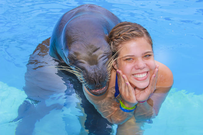 1 / 4Meet our intelligent and quirky sea lions! You can pet your sea lion, shake a flipper, give them a hug and maybe even get a wet, fishy kiss in return.