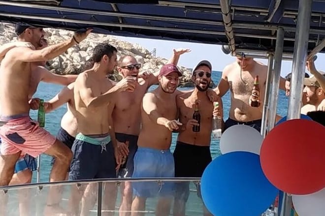 Let your captain and crew show your the Tel Aviv Skyline and waters on this unforgettable Sightseeing fun cruise. Bring your own drinks and take along your favorite snacks. Stop to make a splash with the use of the boat's floating mat and tubes. Hop aboard the cruise at the pier in Tel Aviv Marina located on Gordon Street and get a taste of the Tel Aviv lifestyle as you play your music on the premium speakers and go on your cruise into the ocean. Meet new people or book the boat with your friends and celebrate a birthday or bachelorette party. Admire views of the city from the water and stop for some fun in the ocean or stay onboard and relax on the shaded deck. Take along your own beer, wine, and soft drinks, and feel free to bring your favorite snacks for your trip.